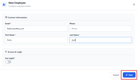 After entering your employee’s information into the fields, click on the ‘Save’ button.