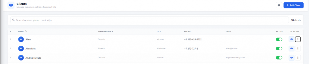In the Client Section, you can manage your clients effectively with the following features: