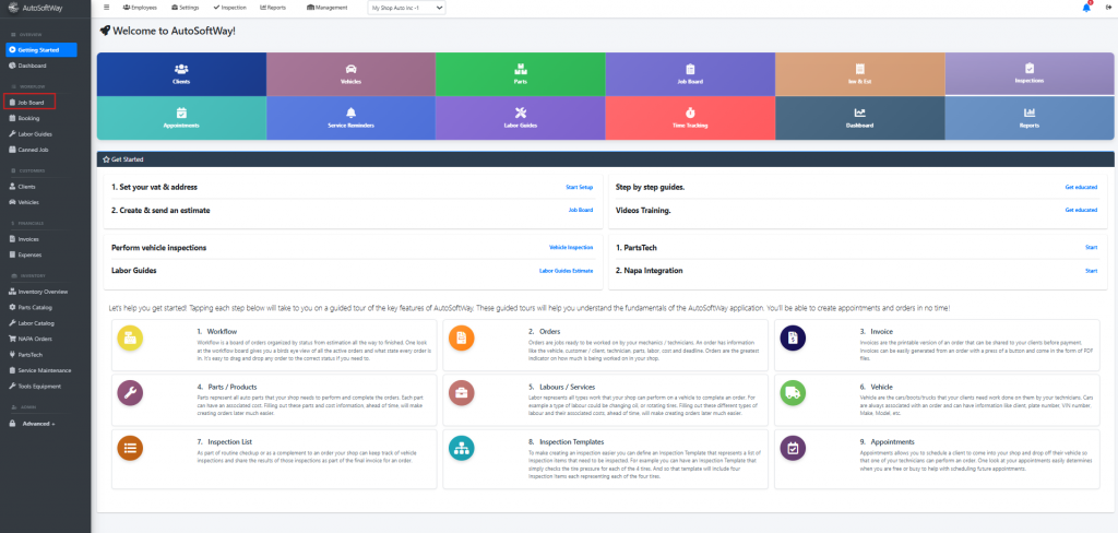 Starting from the ‘Getting Started’ page, navigate to sidebar menu, and click on ‘Job Board’ tab.