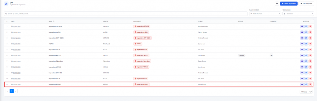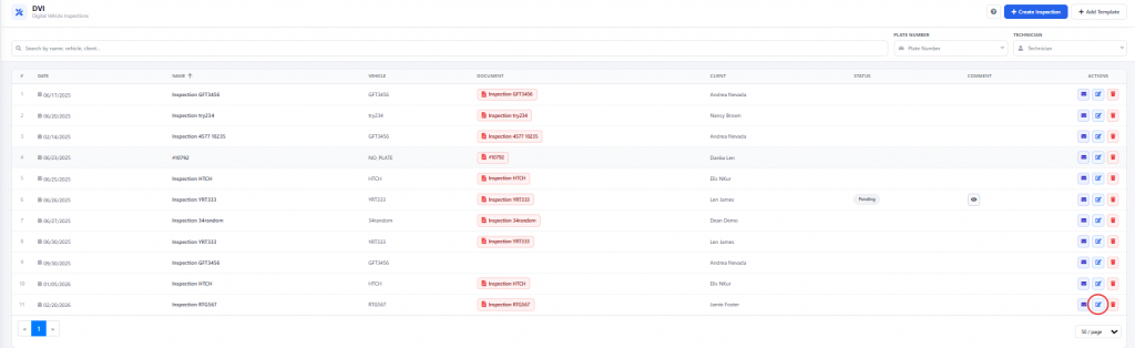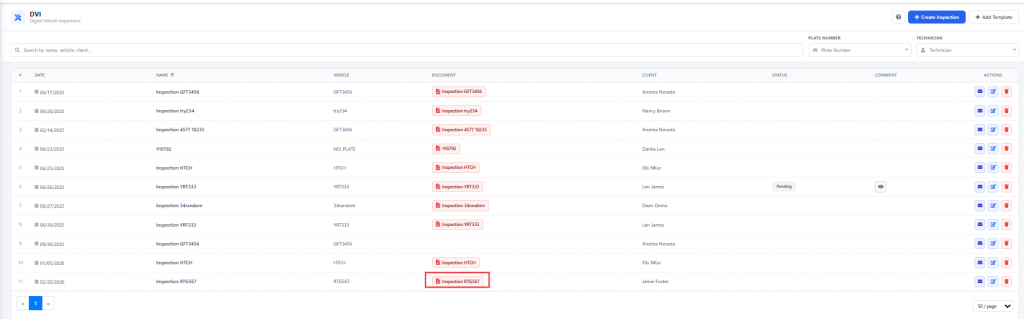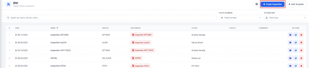 From the DVI inspection menu, click ‘Create Inspection’ at the top of the page.