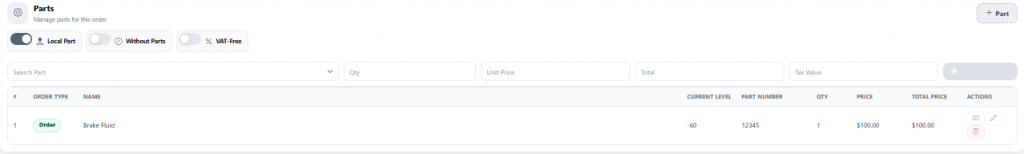 If the job requires multiple parts, click on ‘Search Part’ and then press the ‘+’ sign once the part is ready to be added.