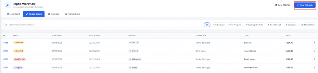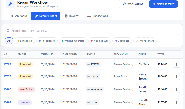 The Repair Workflow now displays all completed invoices, with the most recent ones appearing at the top. Once completed, each invoice is securely stored in the system.