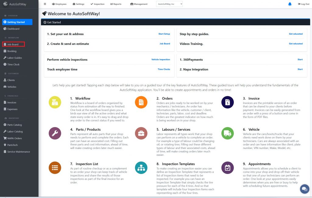 Starting from the ‘Getting Started’, navigate to sidebar menu, and click on the ‘Job Board’