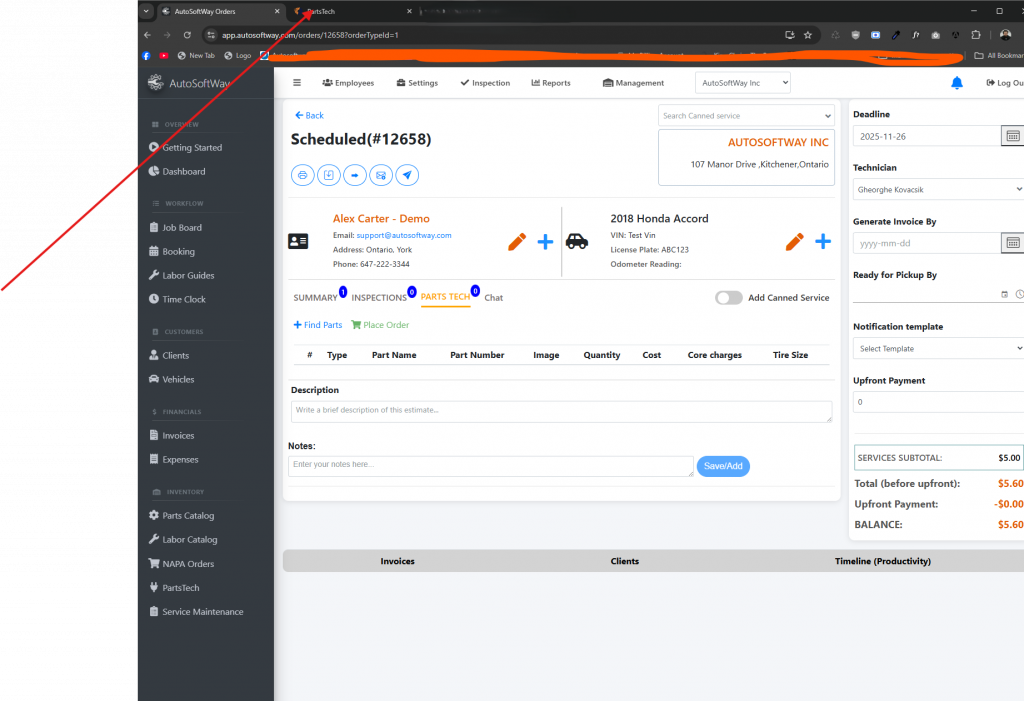 Then click “Edit/Add PartsTech Account.” Before linking, ensure you already have an active PartsTech account. Once your PartsTech account is created, you can easily connect it to AutoSoftWay.