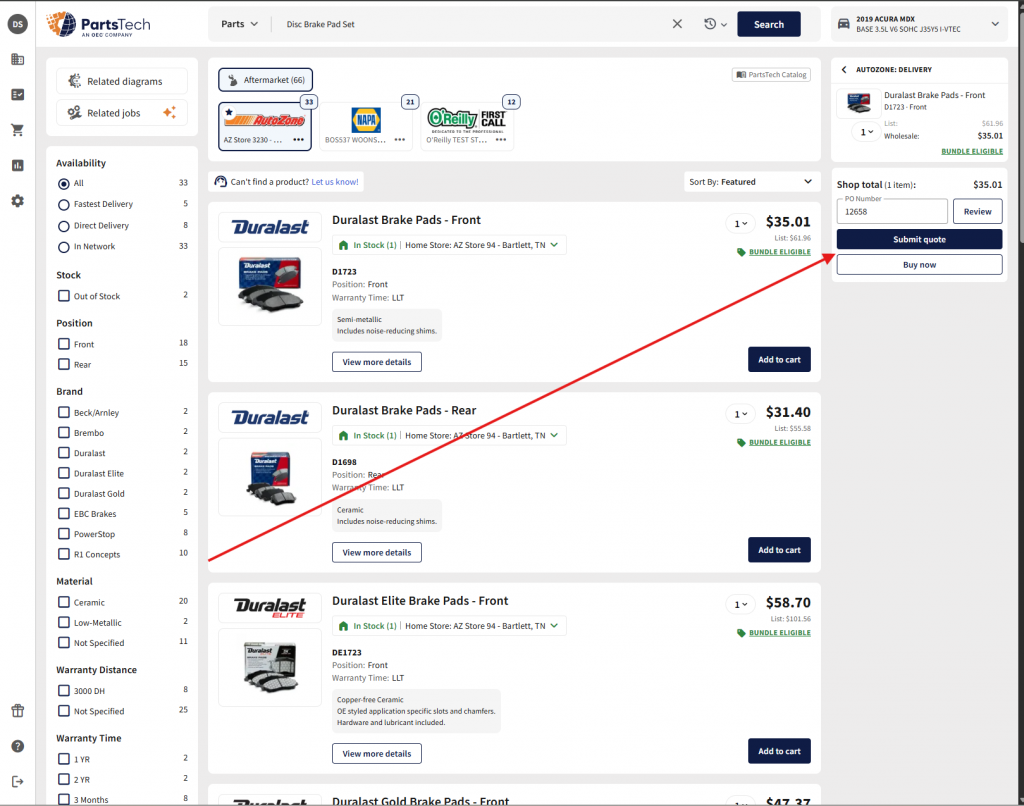 How to order parts from PartsTech
