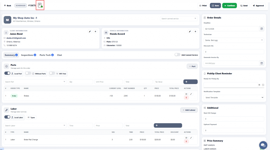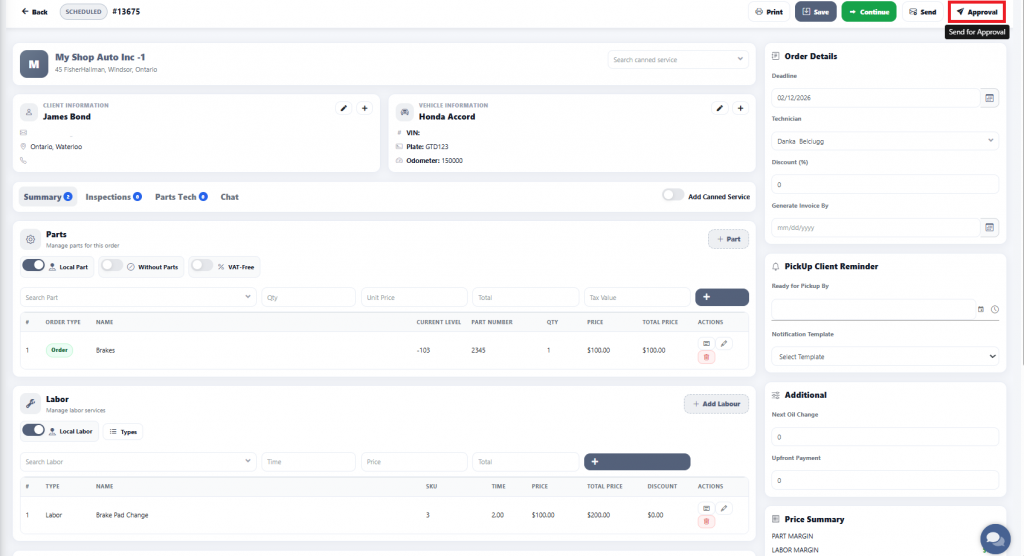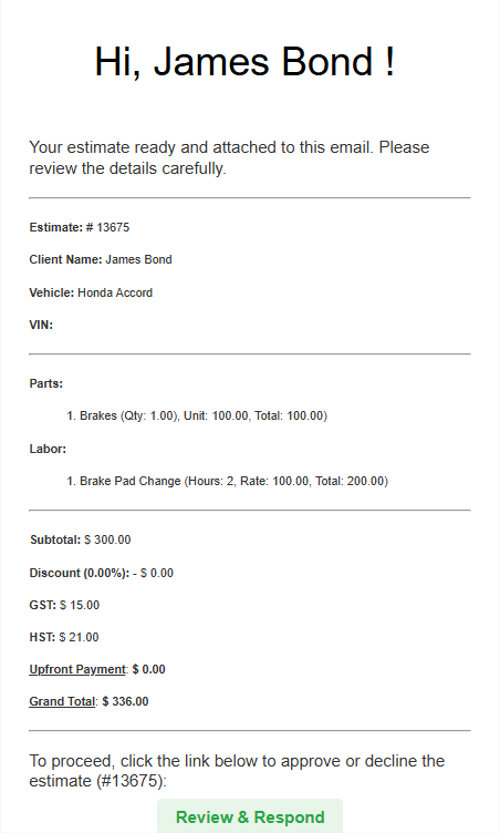 Once the client approves the estimate, the response will be sent to the technician.