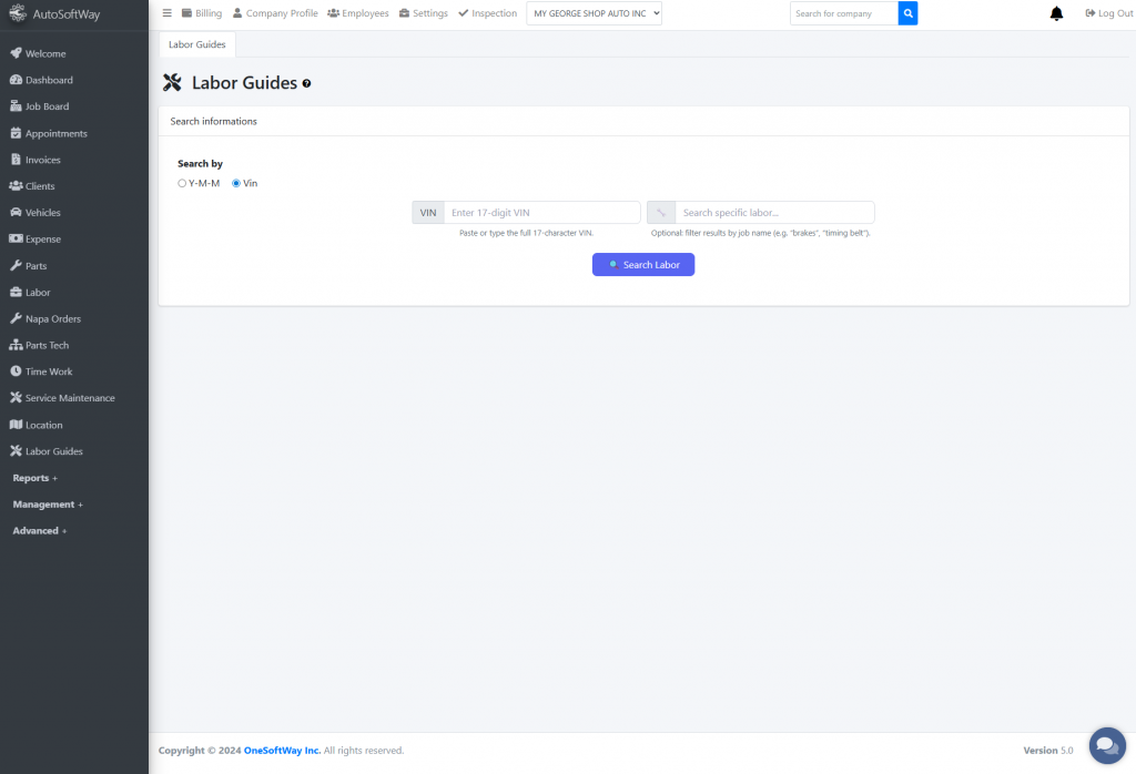 - Populate Labor Requirements: The system automatically retrieves relevant labour requirements based on the VIN.