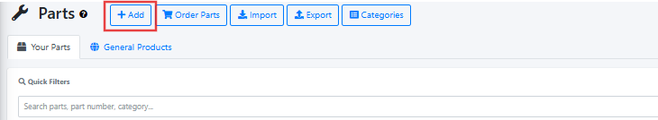 From the client’s menu, click either on add/add by VIN /Order Parts or Import ‘Parts’. The ‘Parts’ can also be added by clicking on ‘General Products’ at the top of the page.