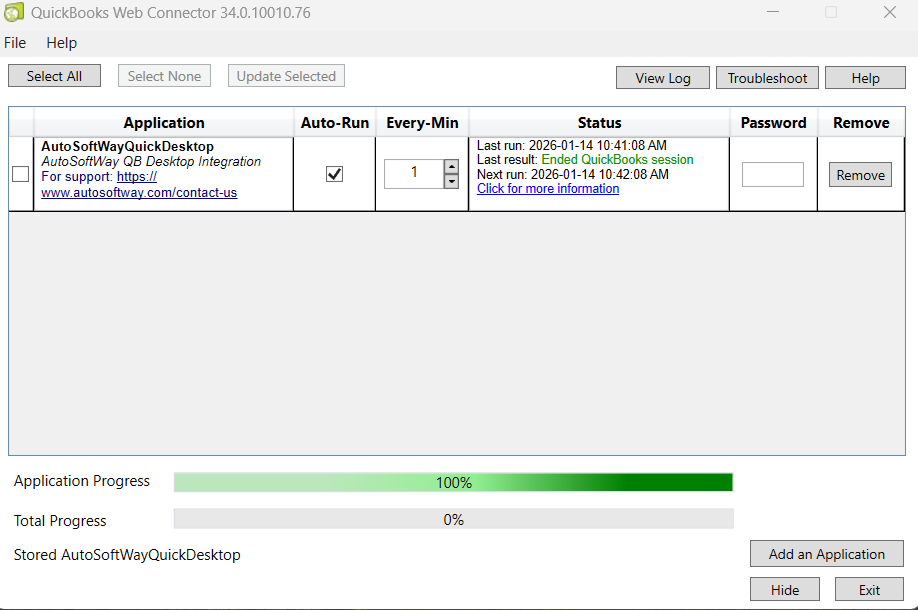 - Open QuickBooks Web Connector on your computer.