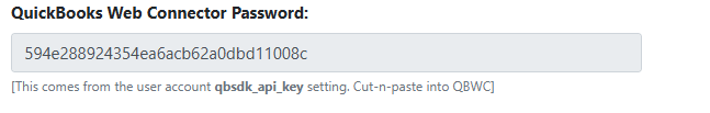 - When prompted, enter the QBWC Password shown below and approve access.