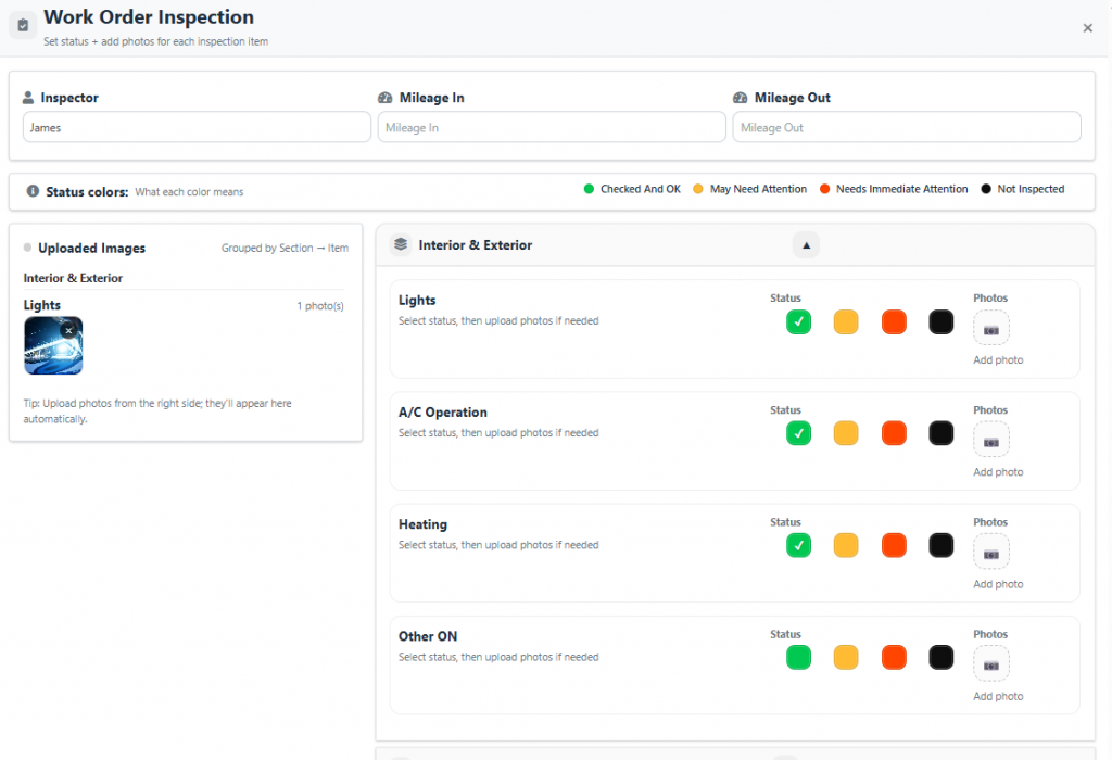 By clicking where the arrow is pointing, the technician can view and check all the items included in the inspection.