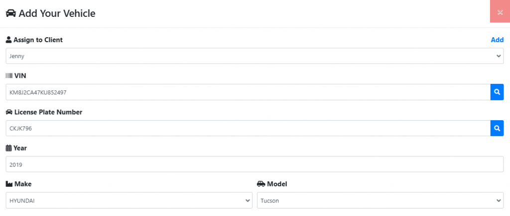 - View vehicle history instantly by clicking Search History from the vehicle record