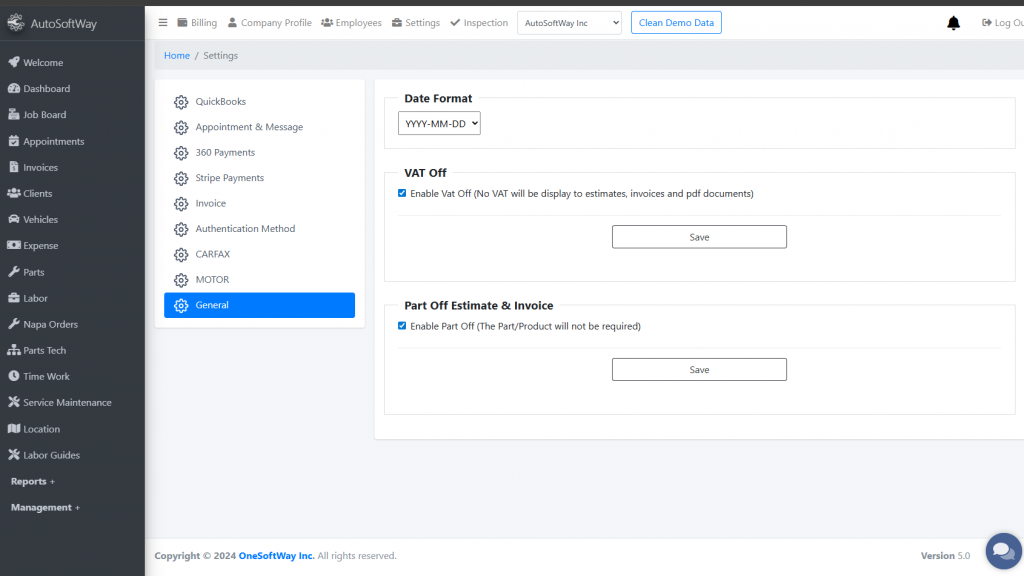 In the AutoSoftWay Settings section, auto repair shops can now easily turn off VAT. This feature is especially useful for regions where VAT is not required, allowing shops to simplify their invoicing and stay compliant with local regulations.