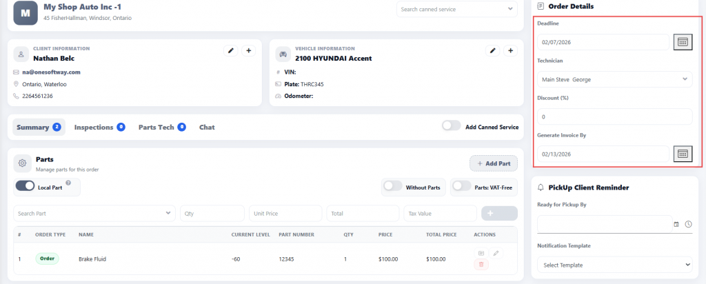 • Customizable Options: Easily apply features like discounts and other adjustments directly within the work order.